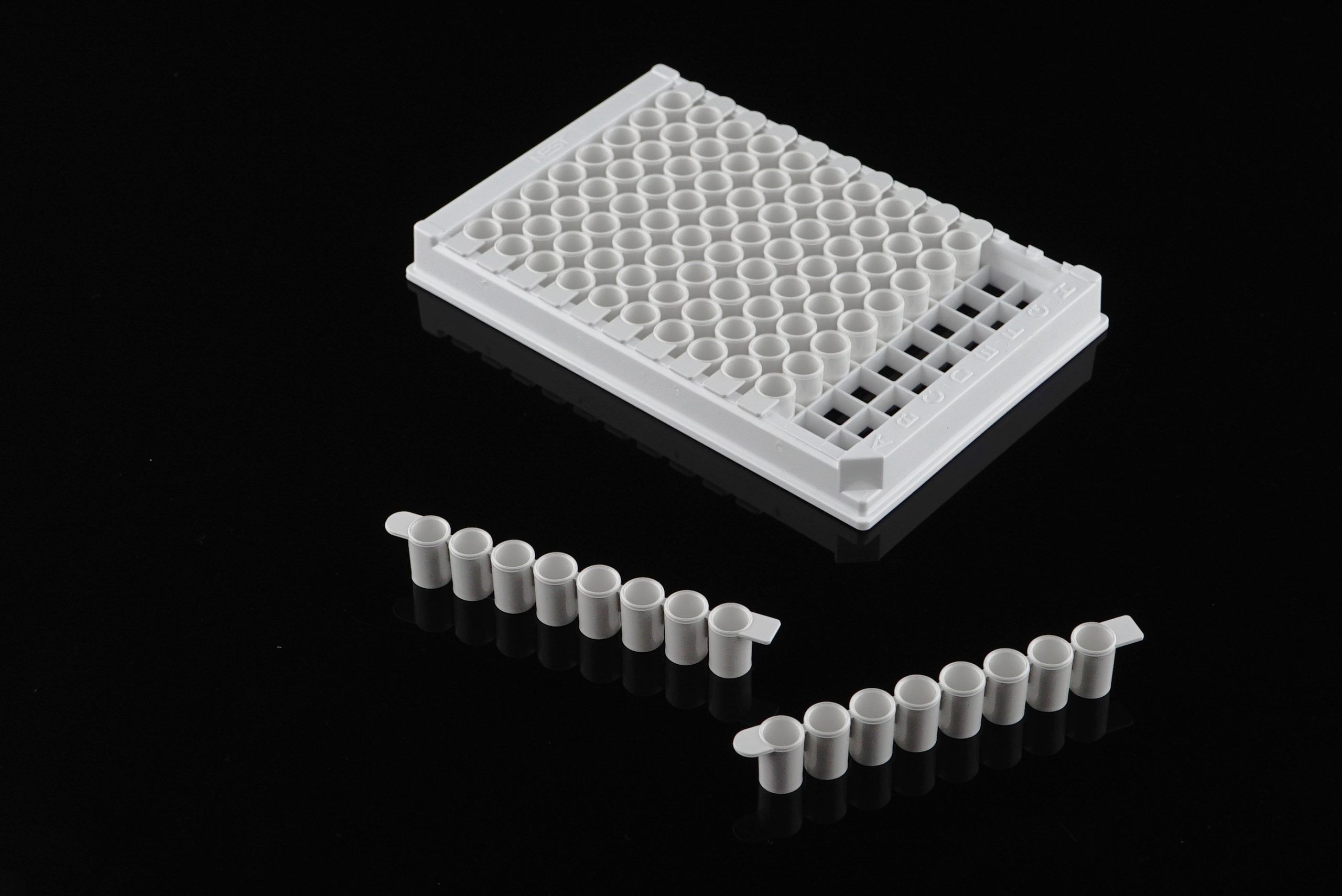 96 Well ELISA Plate, 8-Well, Detachable, High Binding, White Frame & CLear Well
