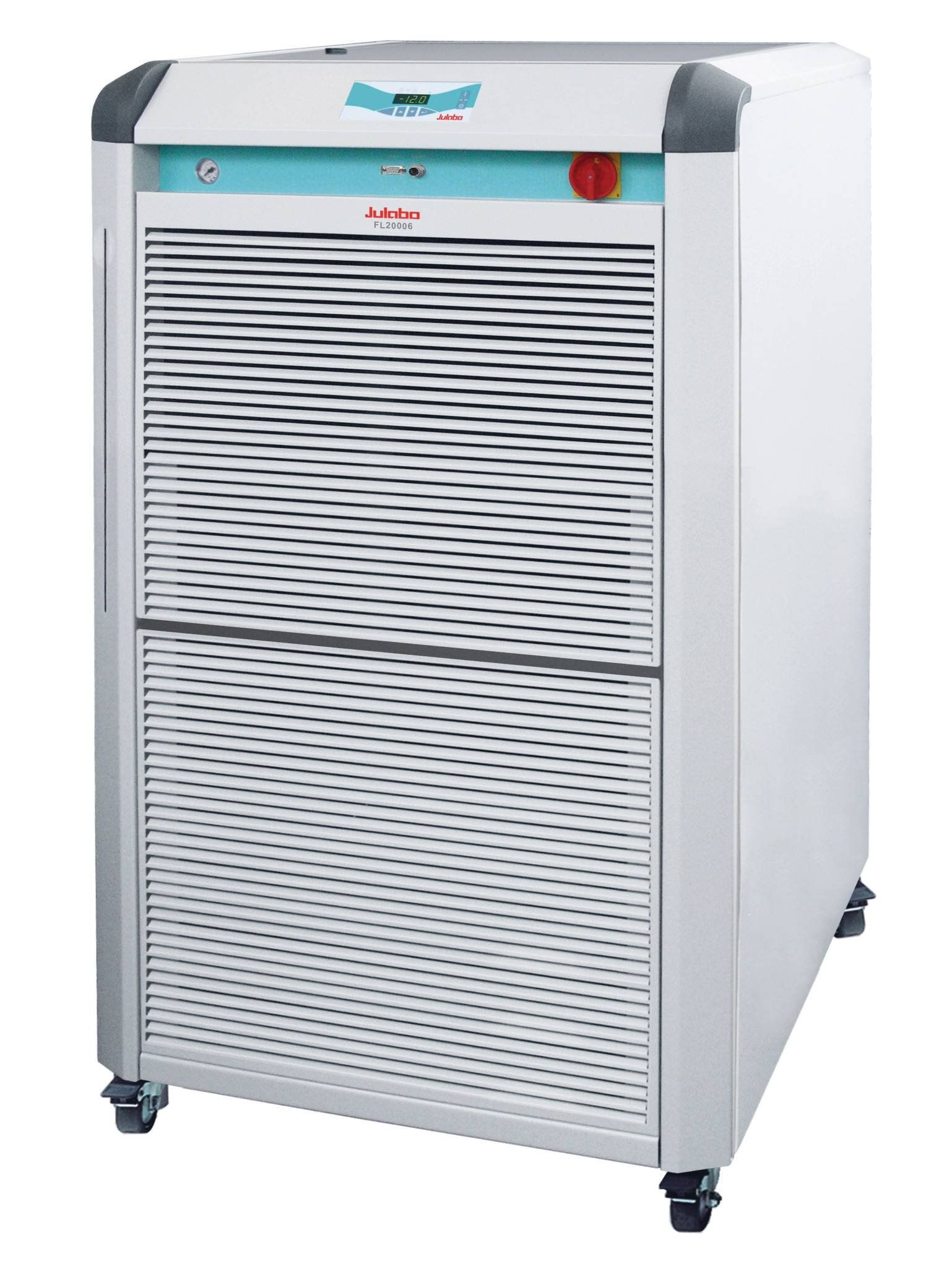 JULABO FL20006 Recirculating Chiller, 208-230V/3PPE/60Hz, -25 °C to +40°C, 20kW cooling power. RS232 and Alarm output ports, 6 bar pump with integrated manual bypass.