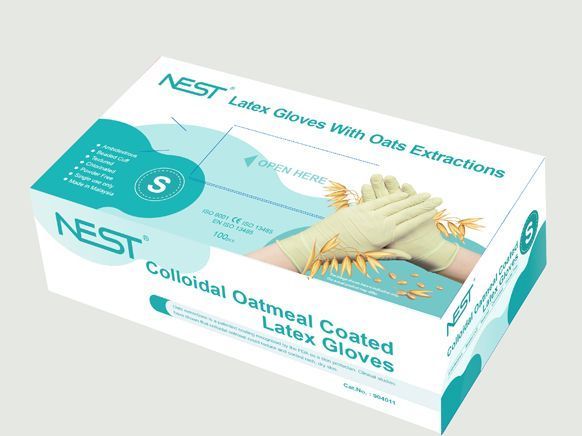 Latex Gloves with Oats Extractions, Powder Free, a patented coating recognized by the FDA as a skin protectant, S, 100/pk