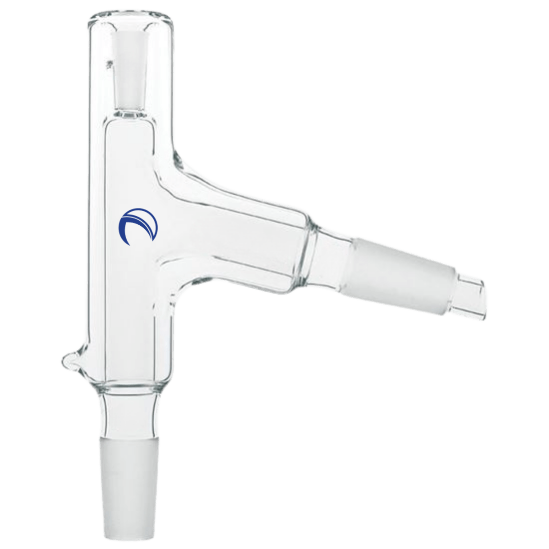 Used as a distilling head with a condenser. Top joint is 10/30 for a 76 mm immersion thermometer. Inner joints are at a 75° angle.