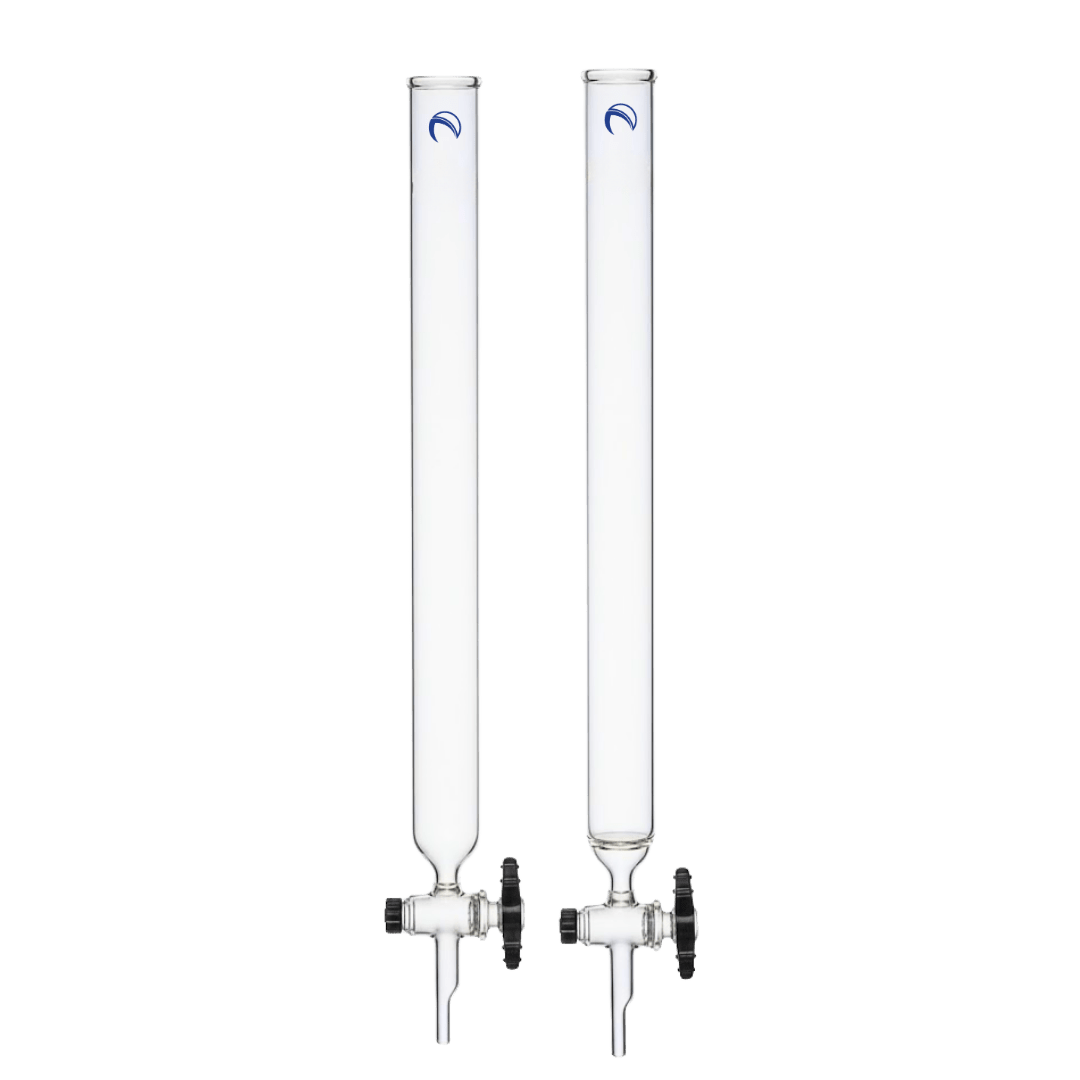 Chromatography column with 2mm PTFE stopcock. Choose column length, ID, and with or without coarse fritted disk. Columns 64mm and wider have a 4mm PTFE stopcock.