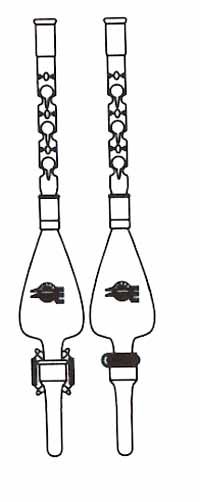 Used to concentrate trace amounts of sample dissolved in organic solvents. Setup consists of: one Snyder column (24/40 jts), one Kuderna-Danish Flask (24/40 top, 19/22 bottom), and one ungraduated concentration tube (19/22 jt).