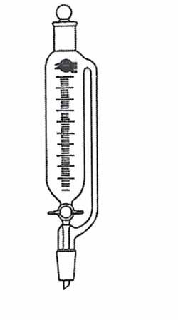 Addition Funnel, Graduated, Cylindrical shape with pressure equalizing arm, 2mm glass or PTFE stopcock, Standard taper joints at both top and bottom