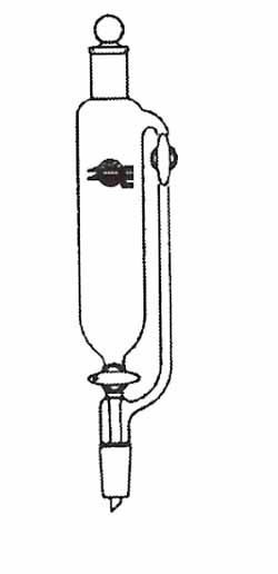 Addition Funnel, Cylindrical shape with pressure equalizing arm, Graduated, 2mm glass or PTFE stopcock, Standard taper joints at both top and bottom