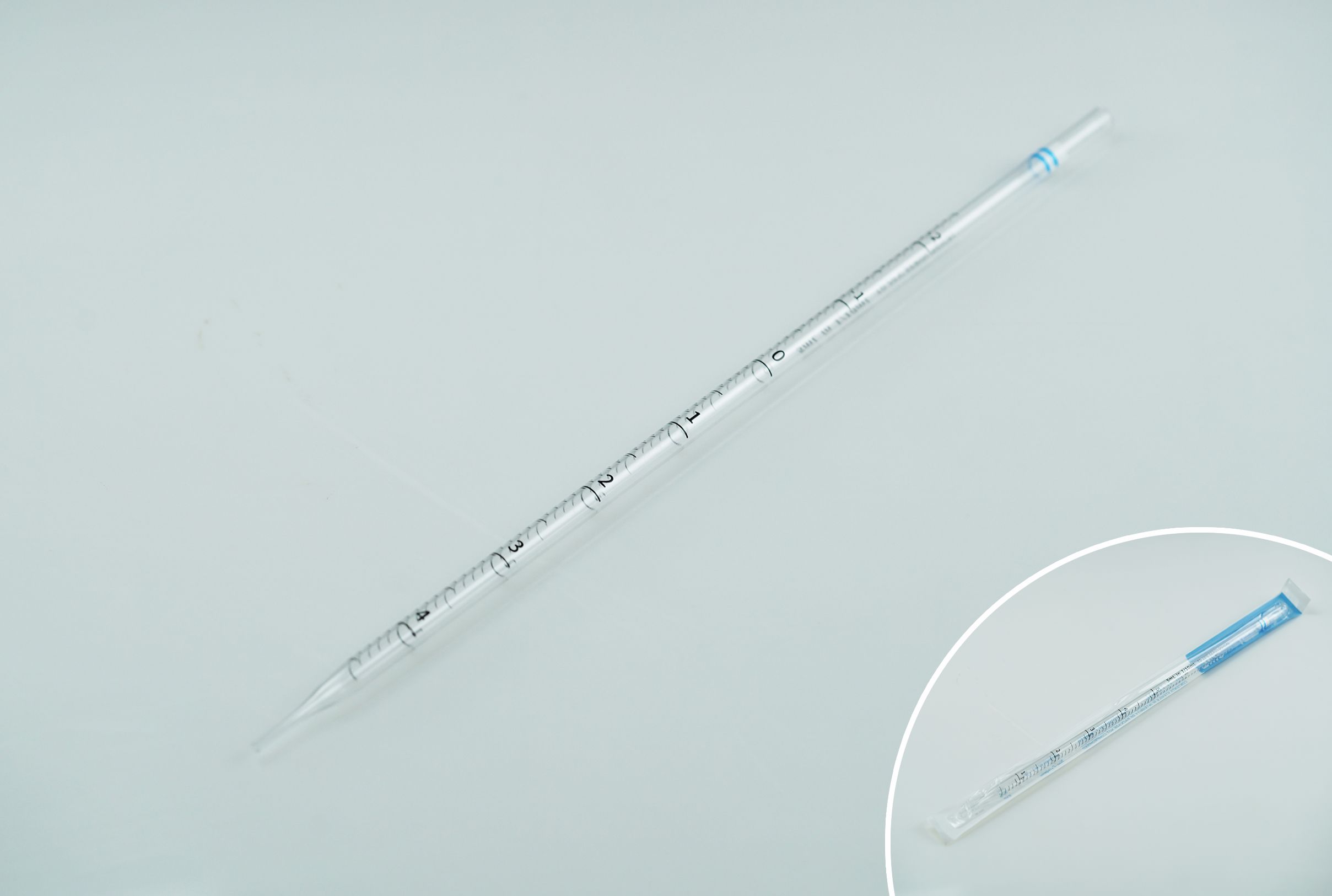 white label 5ml Serological Pipette with 2.5ml negative graduation, 1/10 ml graduations, Individually Wrapped, sterile